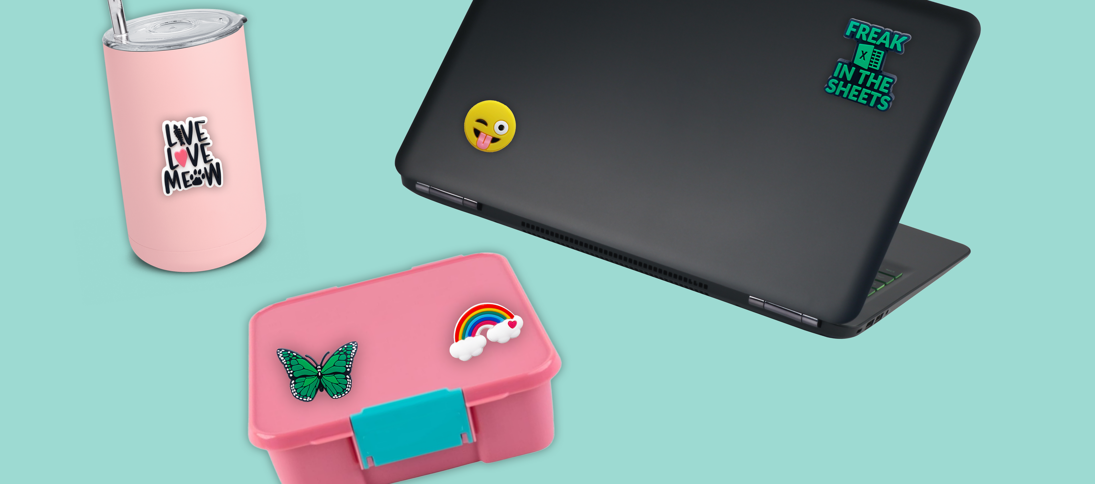 SIPBITZ CHARMS AREN'T JUST FOR DRINKWARE! STICK THEM TO LUNCHBOXES, PHONE CASES, LAPTOPS, OR ANY SMOOTH, DRY SURFACE TO ADD A TOUCH OF PERSONALITY TO YOUR EVERYDAY ESSENTIALS.